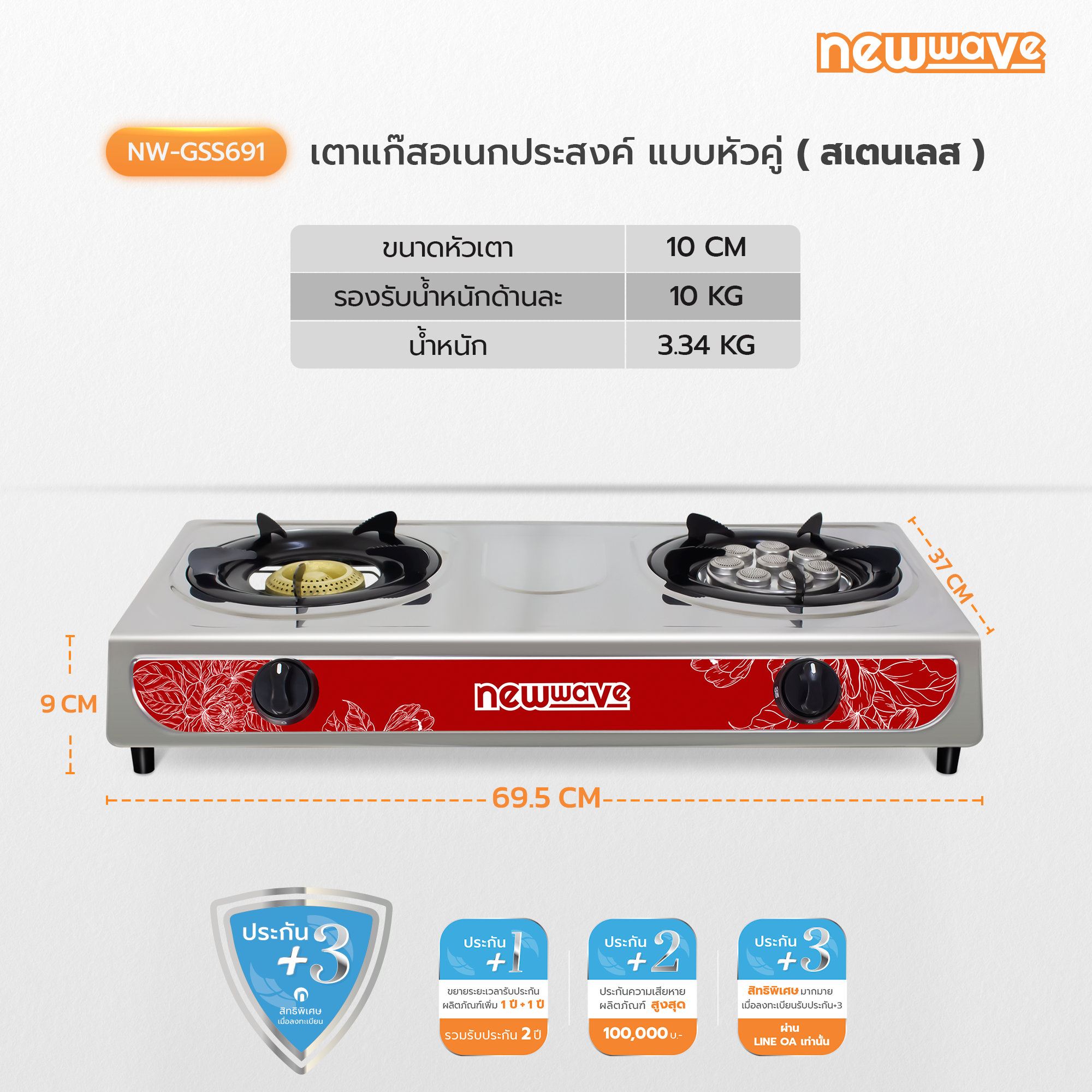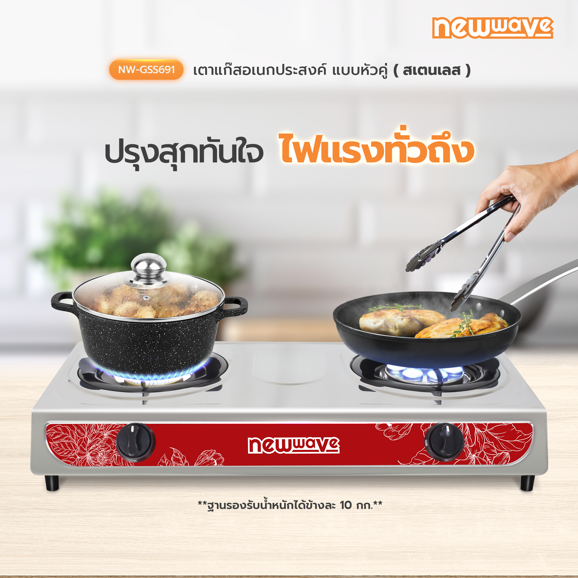ชื่อสินค้า - Newwave-260130 เตาแก๊สสเตนเลสตั้งโต๊ะ 2 หัวเตา รุ่น NW-GSS691 |